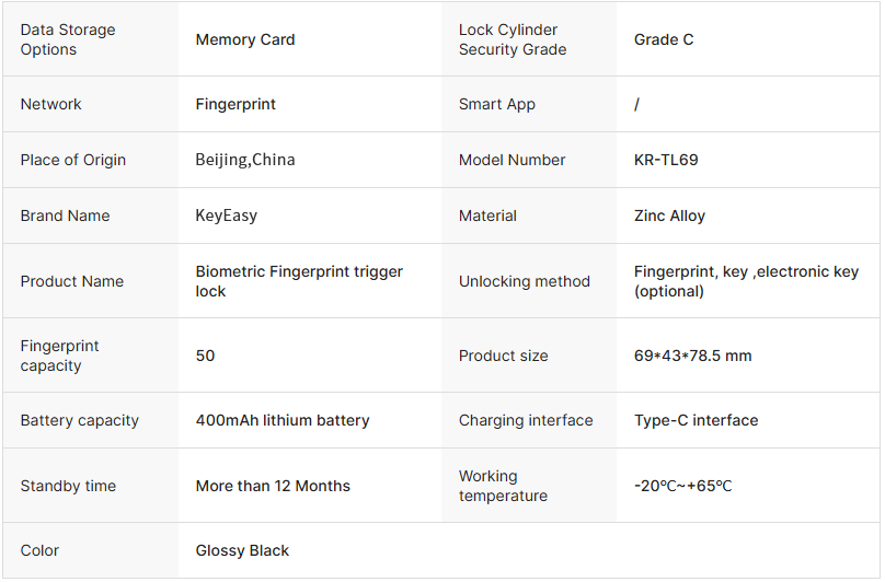 Biometric Fingerprint Gun Trigger Lock is a safety device that controls firearm discharge through fingerprint recognition technology, allowing only authorized users to unlock and pull the trigger, preventing unauthorized use.